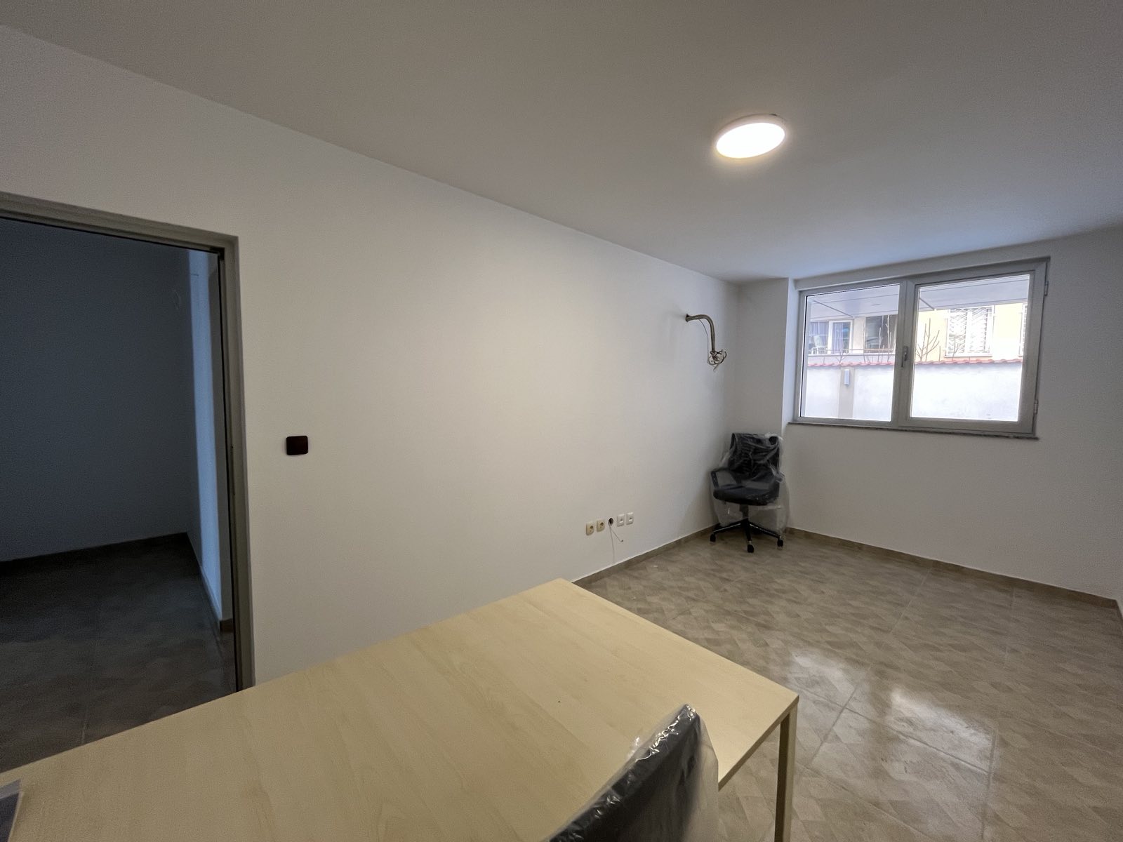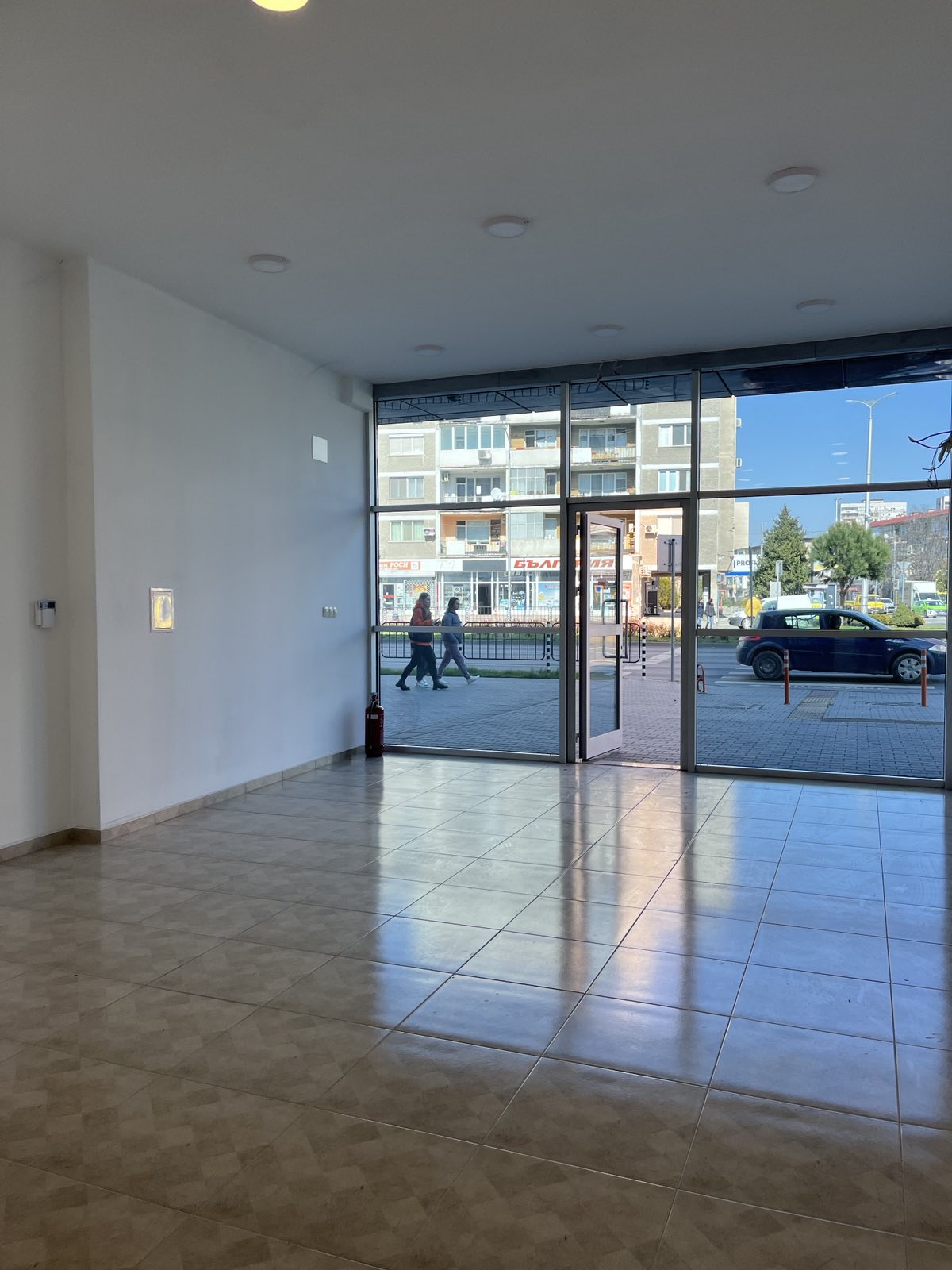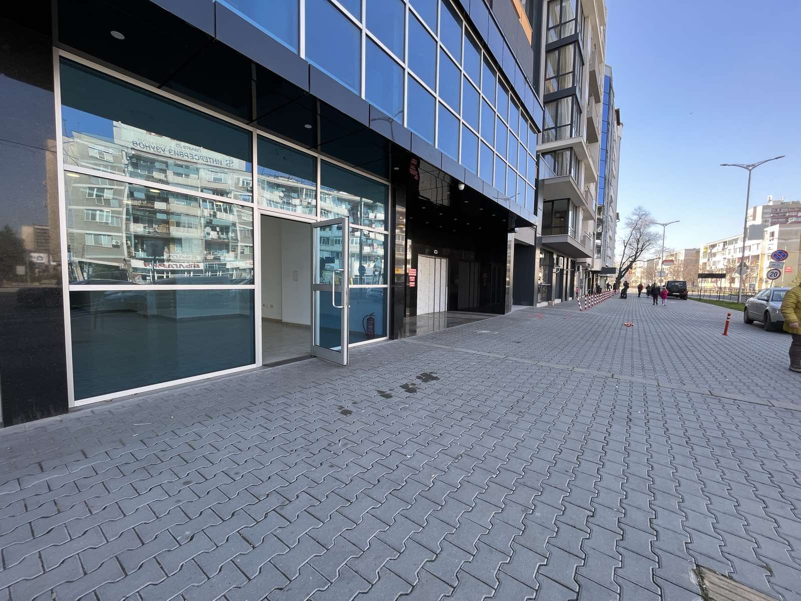 Представлява МОСТРЕНА ЗАЛА към булеварда, с ГОЛЯМА ВИТРИНА. Към вътрешния двор 2 оборудвани кабинета с бюра и столове. Две бани и тоалетни. Окачени тавани, лунички, СОТ.