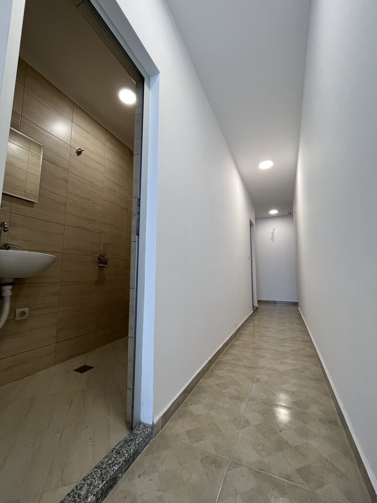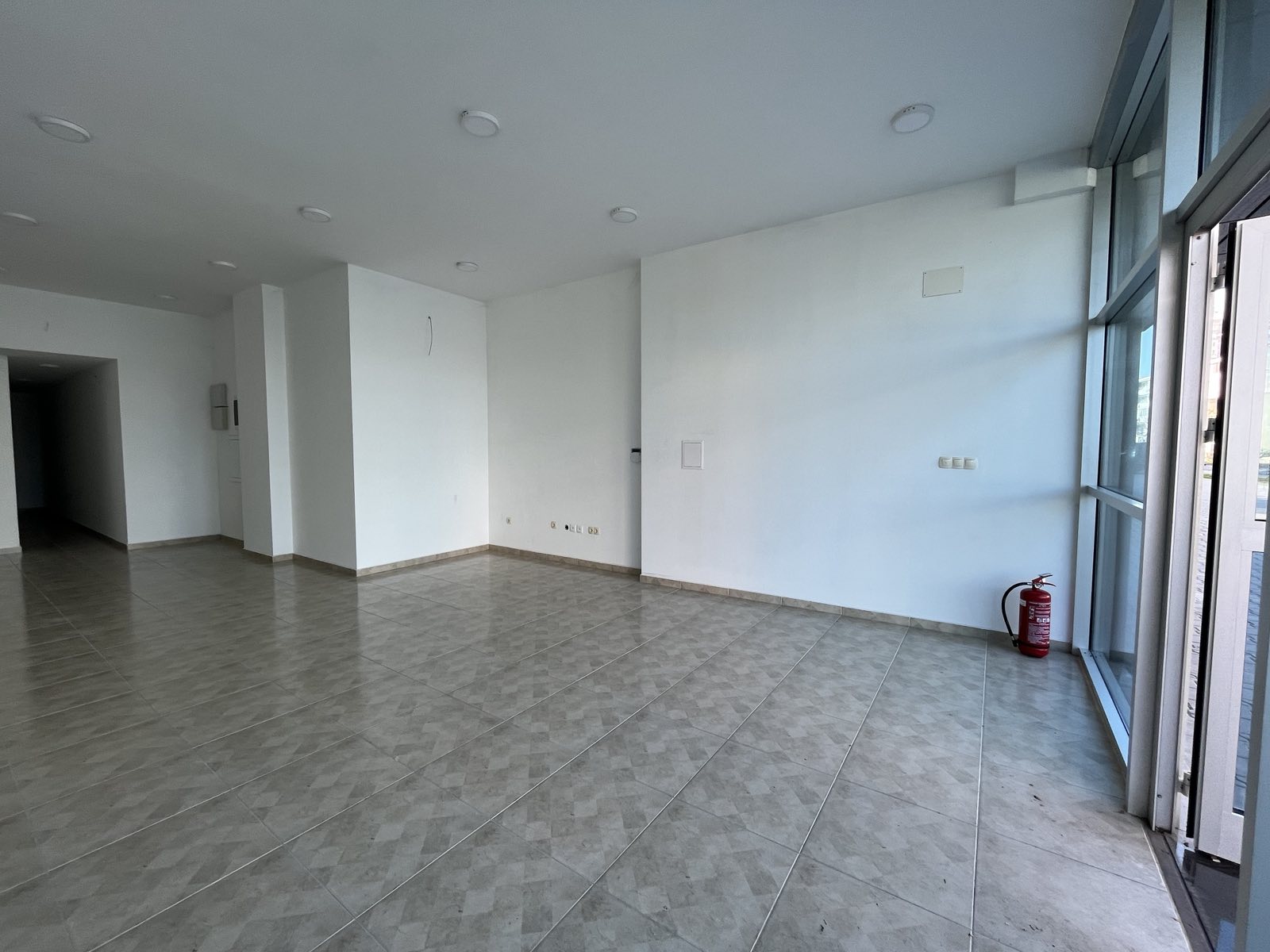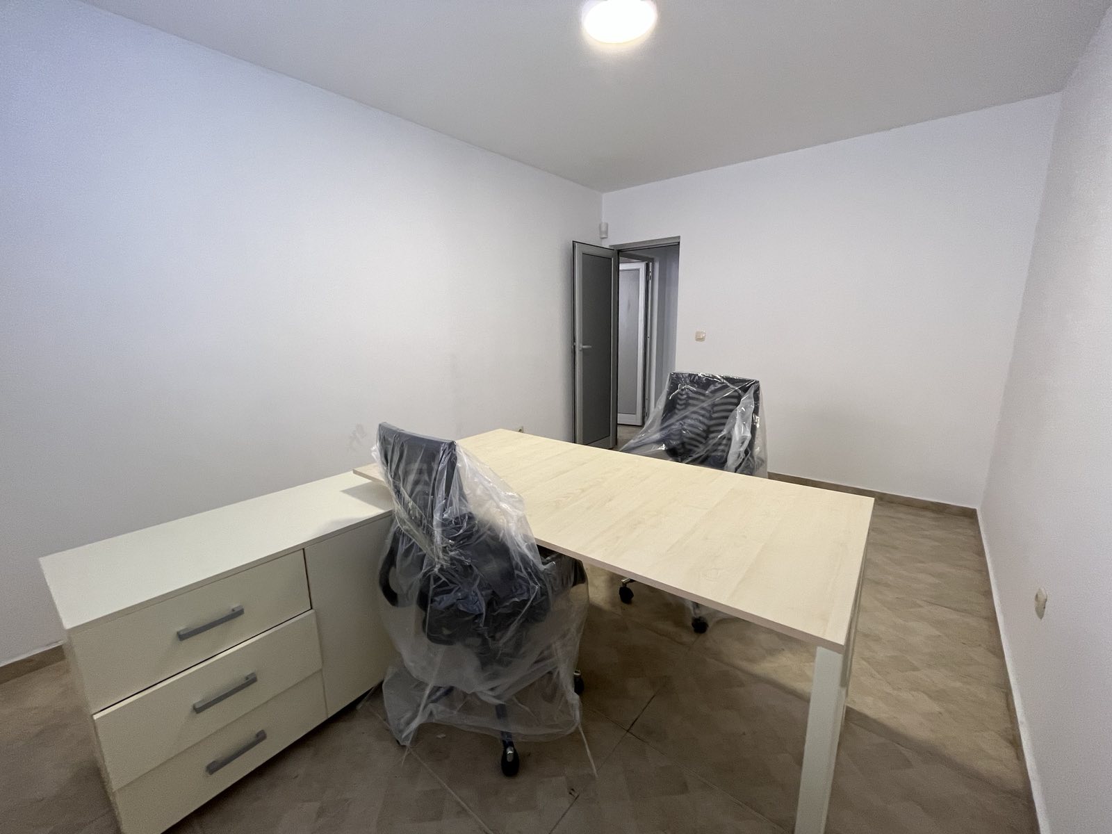 Представлява МОСТРЕНА ЗАЛА към булеварда, с ГОЛЯМА ВИТРИНА. Към вътрешния двор 2 оборудвани кабинета с бюра и столове. Две бани и тоалетни. Окачени тавани, лунички, СОТ.