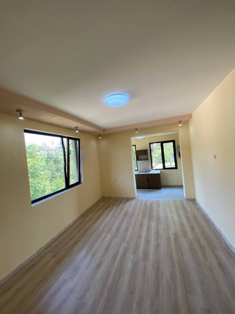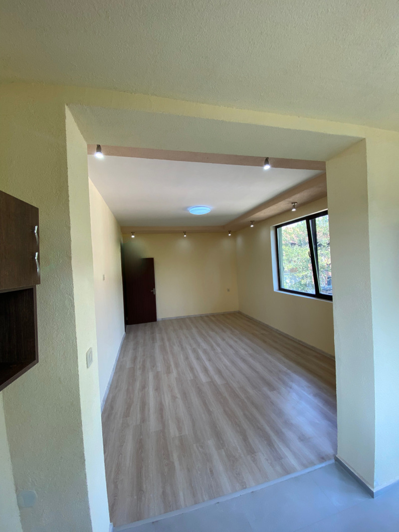Стар монолитен апартамент тип "мезонет" след основен ремонт. Състои се на първо ниво спалня, голям хол, една затворена тераса преустроена в кухненски бокс, баня с тоалетна. По вътрешно стълбище се отива на втора спалня.