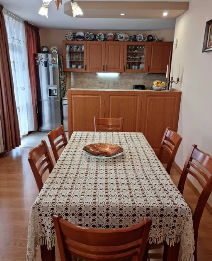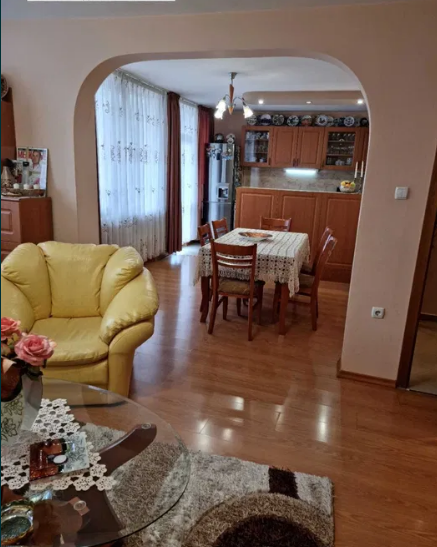 Стар, монолитен апартамент със следното разпределение:: П - образен коридор с вградени гардероби, баня с тоалетна (6.20 кв.м), отделна тоалетна, две големи спални, всекидневна с кухненски бокс и хол (37,25 кв.м.), две тераси (8 кв.м.) с южно изложение, перално/гладачно помещение, както и прилежаща изба с площ от 8 кв.м.