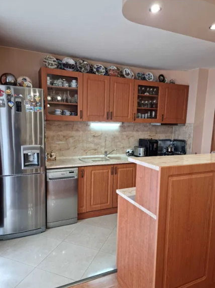 Апартаментът е напълно завършен и готов за живеене, продава се с цялото налично обзавеждане и оборудване - висок клас климатици DAIKIN, кухня с всички необходими електроуреди, нова дограма PVC, венециански мазилки, окачени тавани със скрито осветление, душкабина, съдомиялна машина.