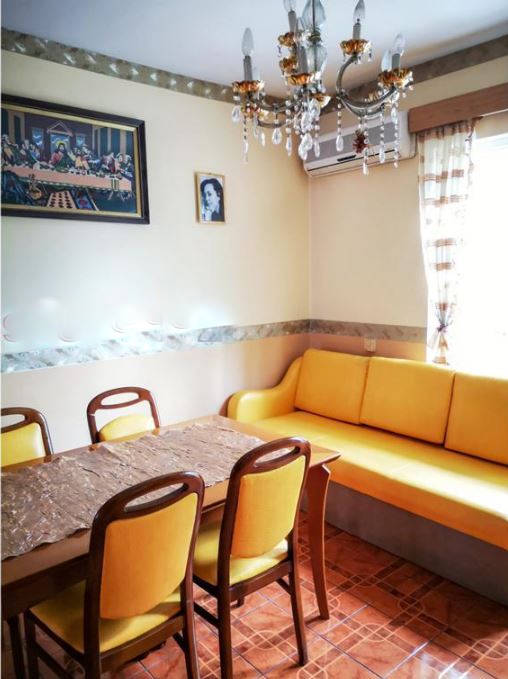 Среден етаж, стара тухлена кооперация, тихи съседи. По