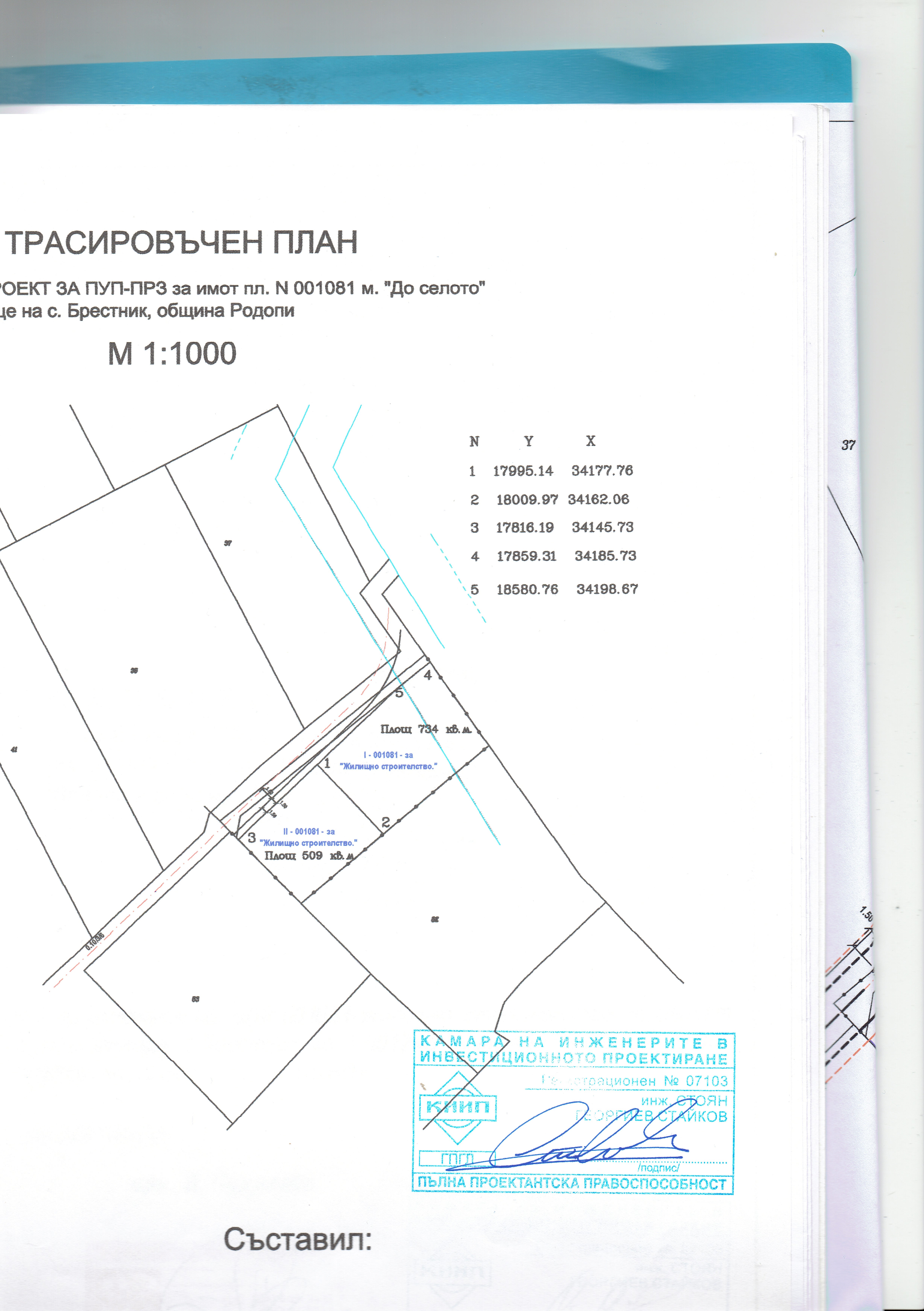 в регулация/УПИ обл.Пловдив с.Брестник 734 кв.м