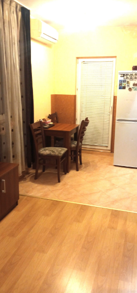 Жилището се състои от едно помещение разделено на кътове, баня с тоалетна и една тераса. Напълно обзаведено. Изложение запад.