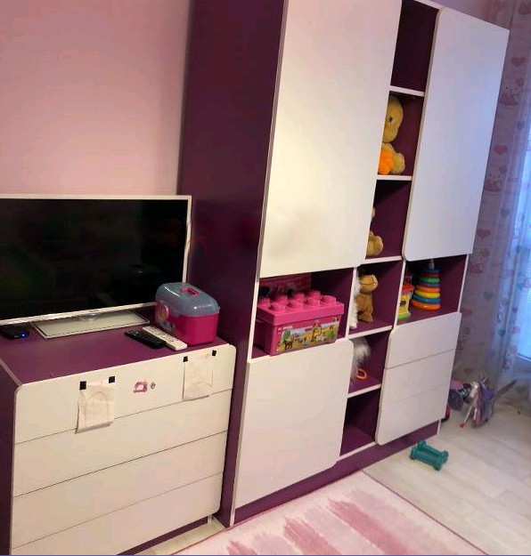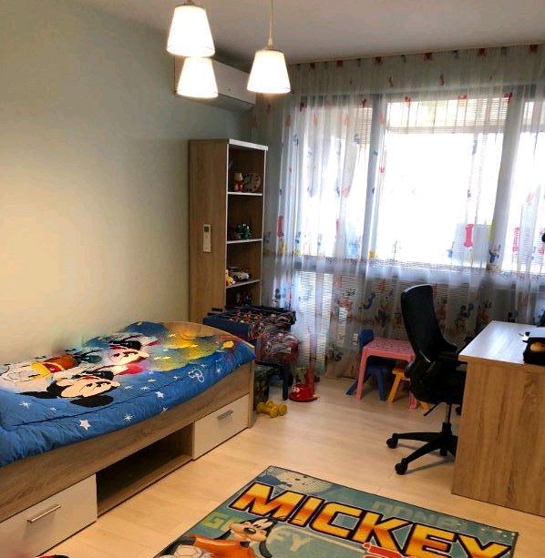 Състои се от три самостоятелни просторни спални, дрешник, хол и кухня с трапезария.