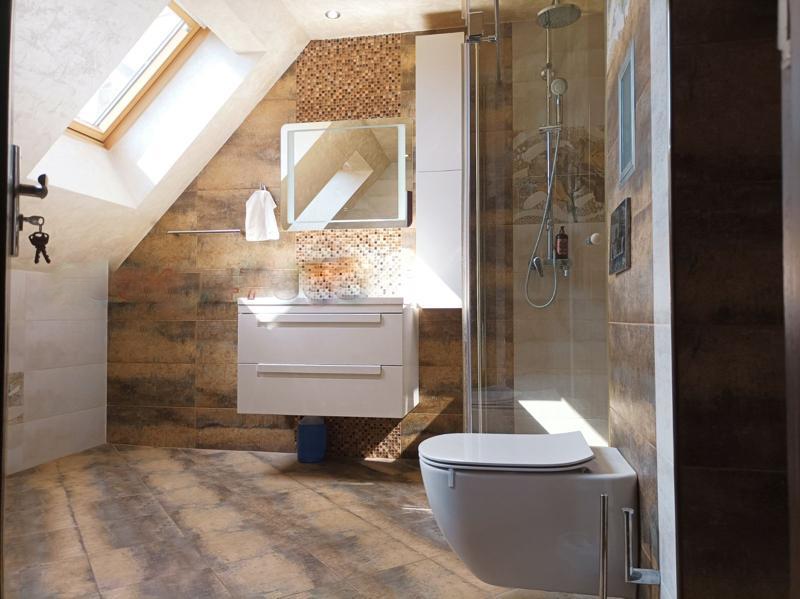Представлява голяма спалня, дневна с хол, кухненски бокс, голяма баня с тоалетна и втора тоалетна.