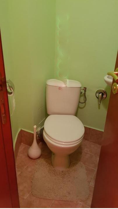 Тристаен монолитен апартамент, единствен на етажа. Състои се от две самостоятелни спални, хол, трапезария, кухненски бокс, баня и тоалетна отделно, две тераси и още една стая на етажа. Продава се обзаведен.