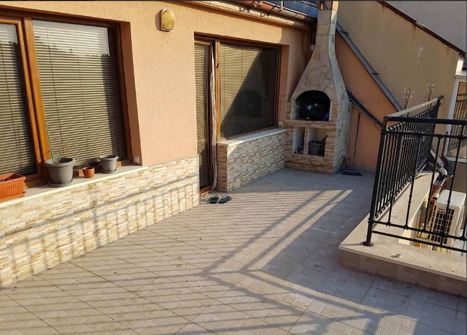 Единствен апартамент на последен етаж в нова сграда от 2010 г. с асансьор. Състои се от две самостоятелни спални, хол, трапезария, кухненски бокс, баня и тоалетна отделно, две тераси, на една от които има изградено барбикю. Жилището е напълно обзаведено.