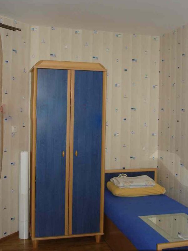 Монолитен апартамент, напълно обзаведен. Състои се от две самостоятелни спални, хол, трапезария, кухненски бокс, баня с двойно джакузи, тоалетна, две обезопасени тераси с метални решетки. Направена е вътрешна шумо и топло изолация на пода и тавана. Към апартамента прилежат избено помещение и идеални части от земята. Жилището е ситуирано на първи висок етаж над гаражи. Има възможност да се закупи партерен гараж 17 кв. м. на цена 15 000 Е, който е под апартамента.
