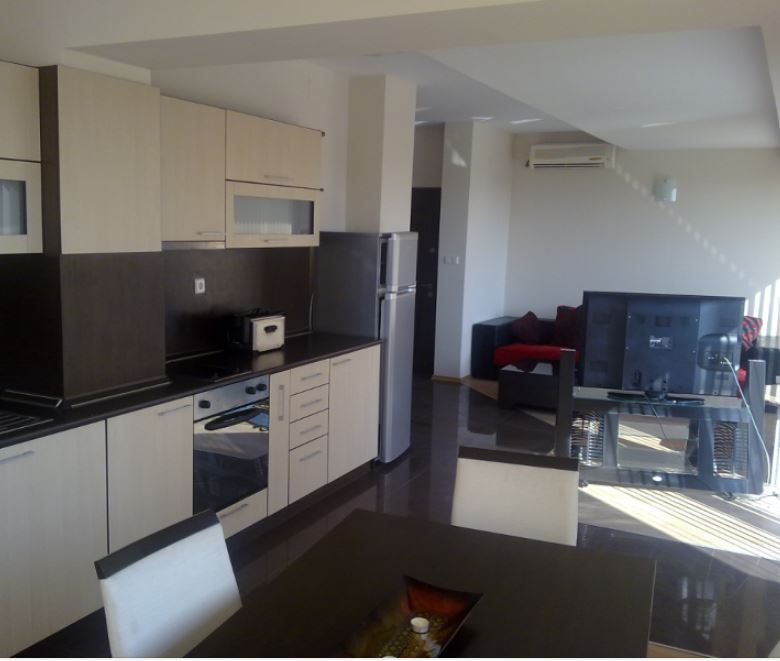 Мезонетът е на две нива и се състои от хол, трапезария и кухня в едно помещение с обособен санитарен възел, камина на дърва и изход към две тераси.