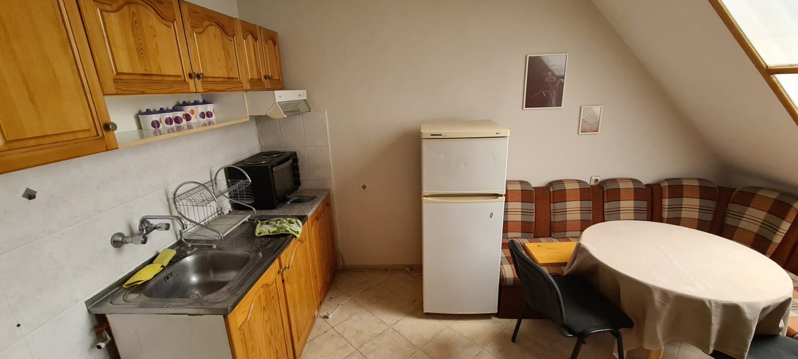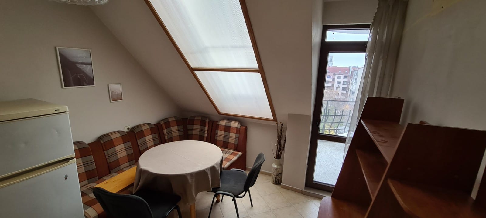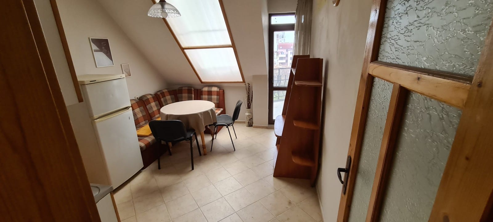 Продава се монолитен двустаен апартамент 72,5 кв.м. състоящ се от спалня, хол, кухня, баня, тоалетна и 2 тераси. . Апартамента е на 5ти етаж последен, има скосения и няма асансьор.