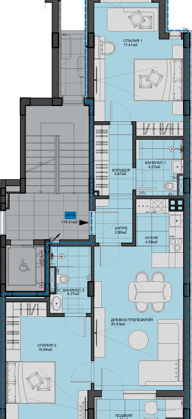 Предлагаме и подледния ПАНОРАМЕН ЕТАЖ. Самостоятелен, с 3 спални.