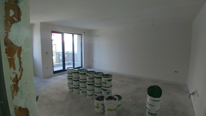 НОВ апартамен включващ спалня, ГОЛЯМ хол, баня с тоалетна и перално помещение. Двете стаи имат излаз към тераси.Опция за закупуване на парко място. Апартаментът е завършен до мазилка и шпакловка и е с АКТ 16. Добра локация в близост до училища, детски градини, болници и главни пътни артерии.