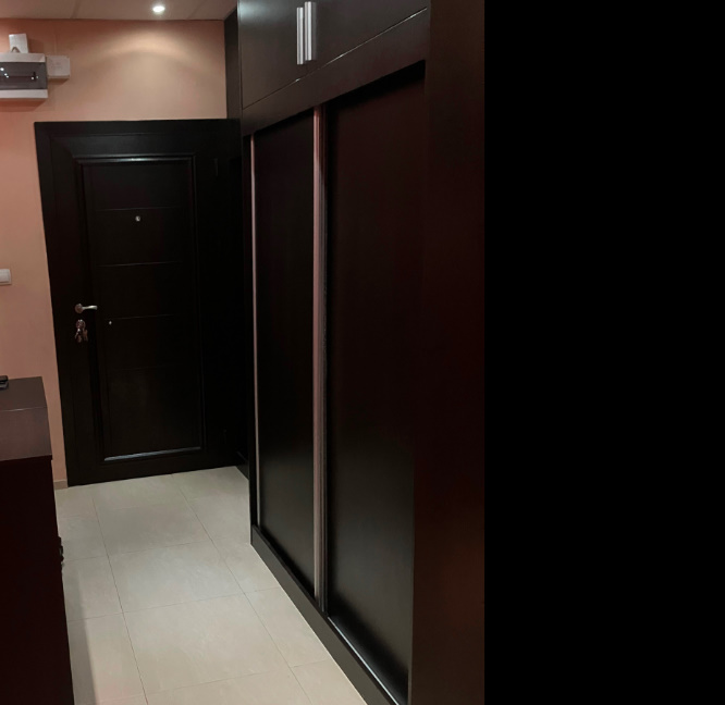 Коридор с много голям и практичен вграден гардероб.