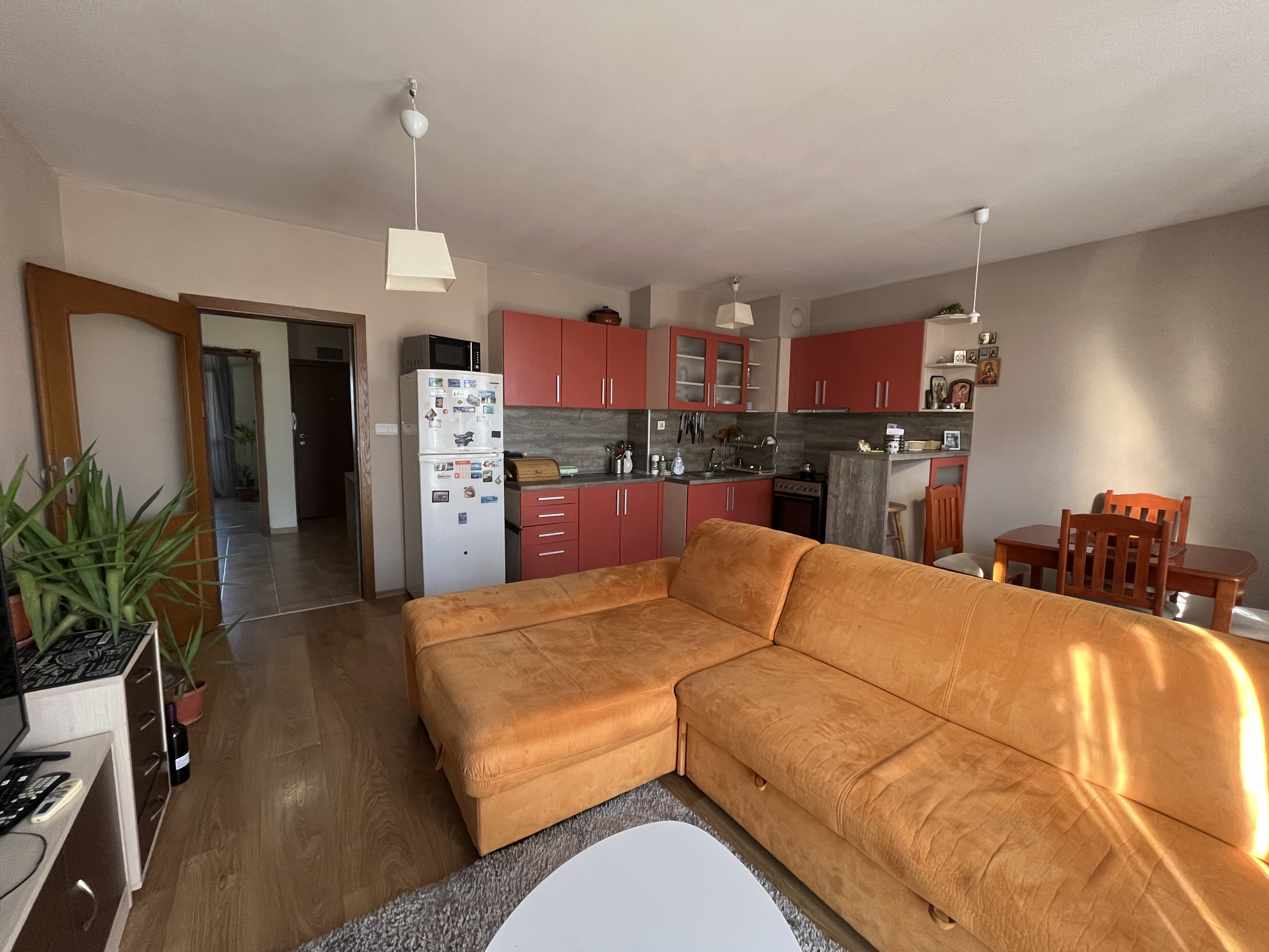 Представлява две самостоятелни спални, хол с трапезария и кухненски бокс.