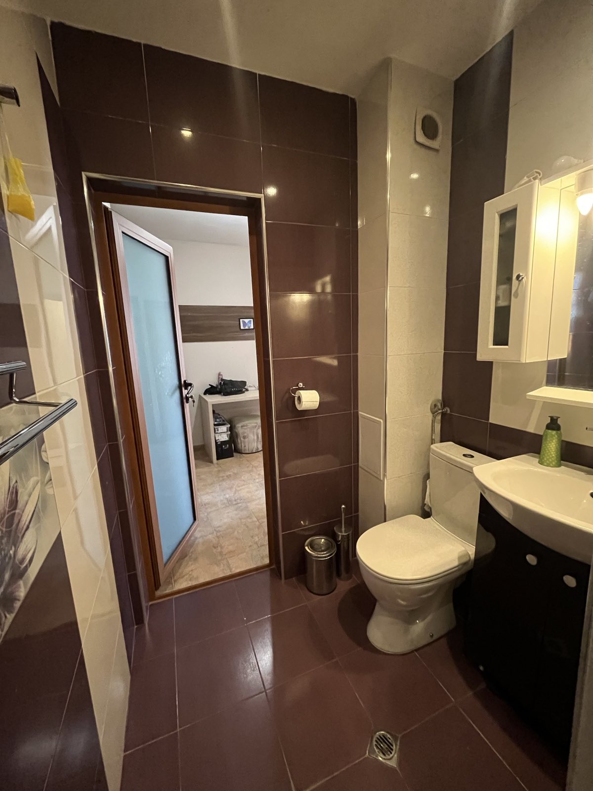 Баня с тоалетна, с душ кабина. Отделна тоалетна, с перално помещение.