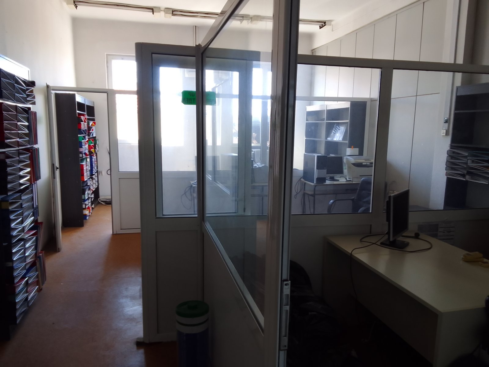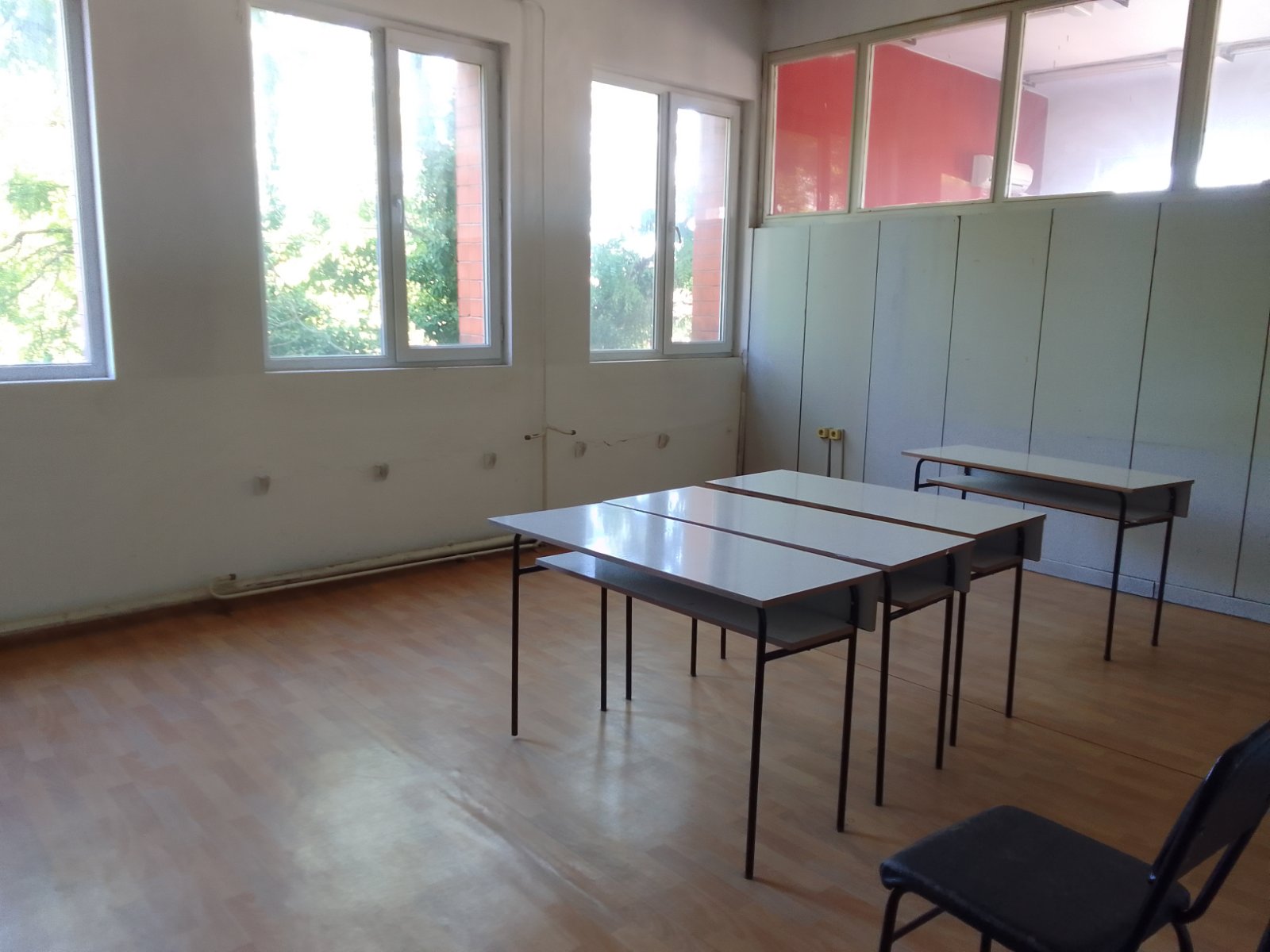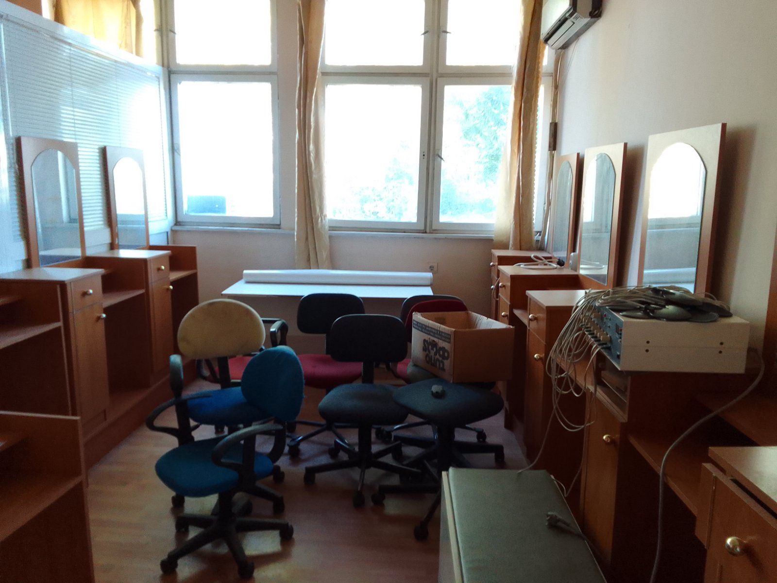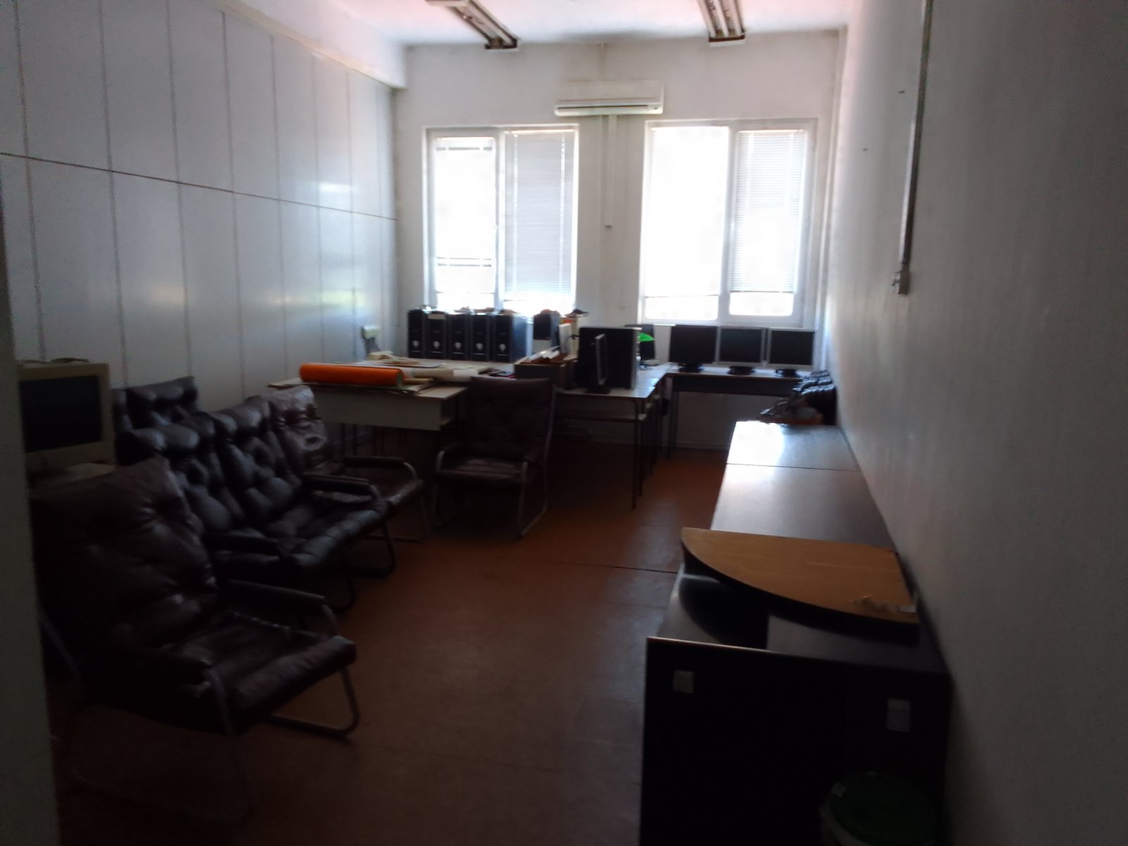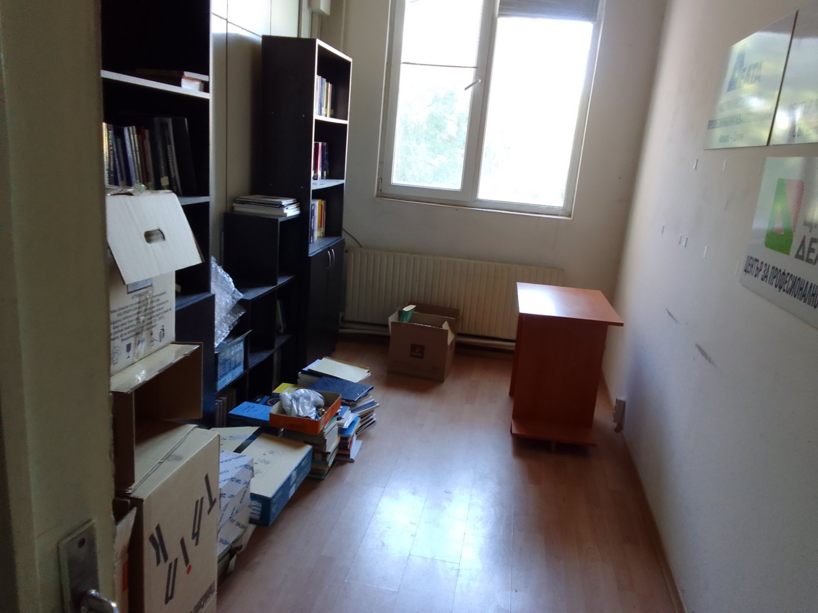 ниво. Състои се от девет основни помещения, две спомагателни, два сан. възела. Подходящо е за учебен център, офис, фитнес и др. Помещенията са преградени с временни прегради, които могат да се премахнат и да стане едно голямо пространство тип "Open Space office ". Ситуиран на четвърти етаж в пететажна сграда с обща площ от 550 кв. м.