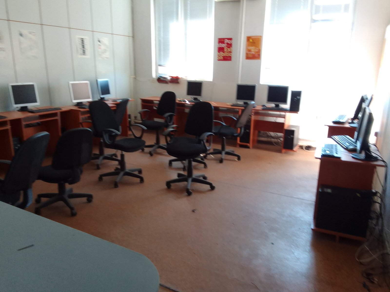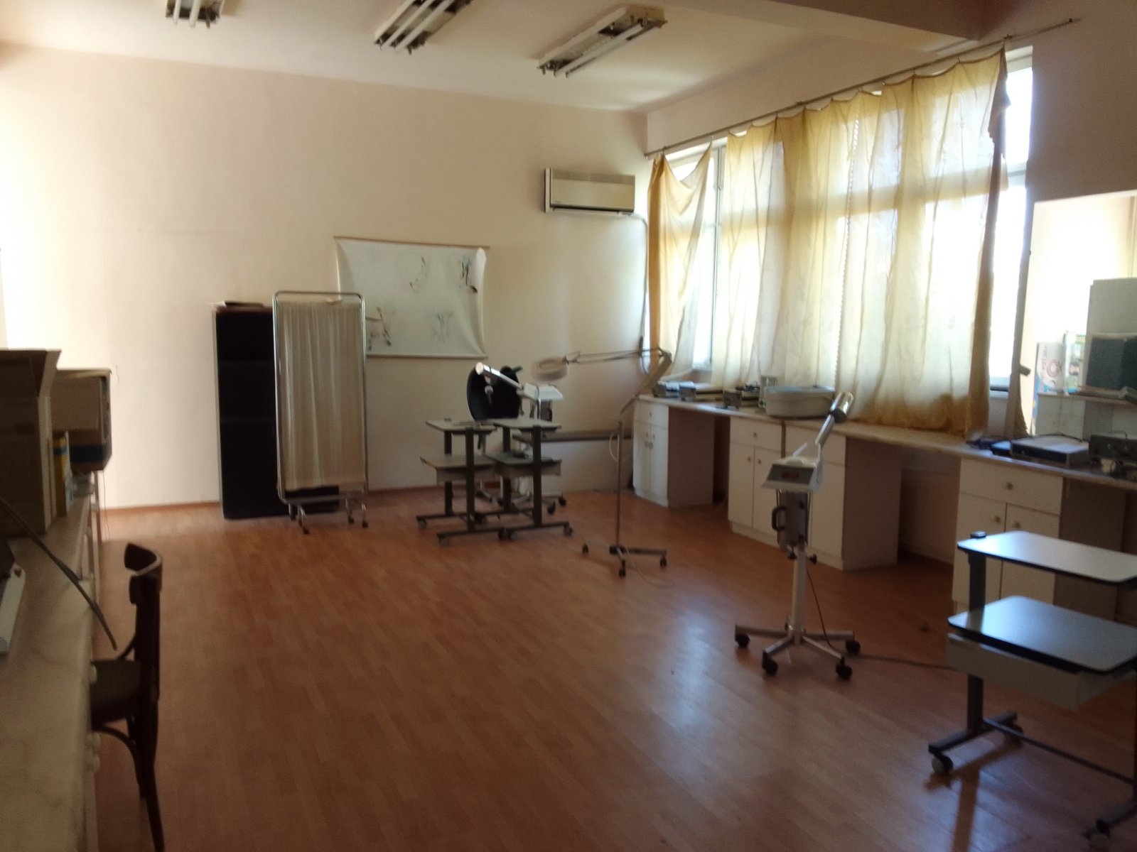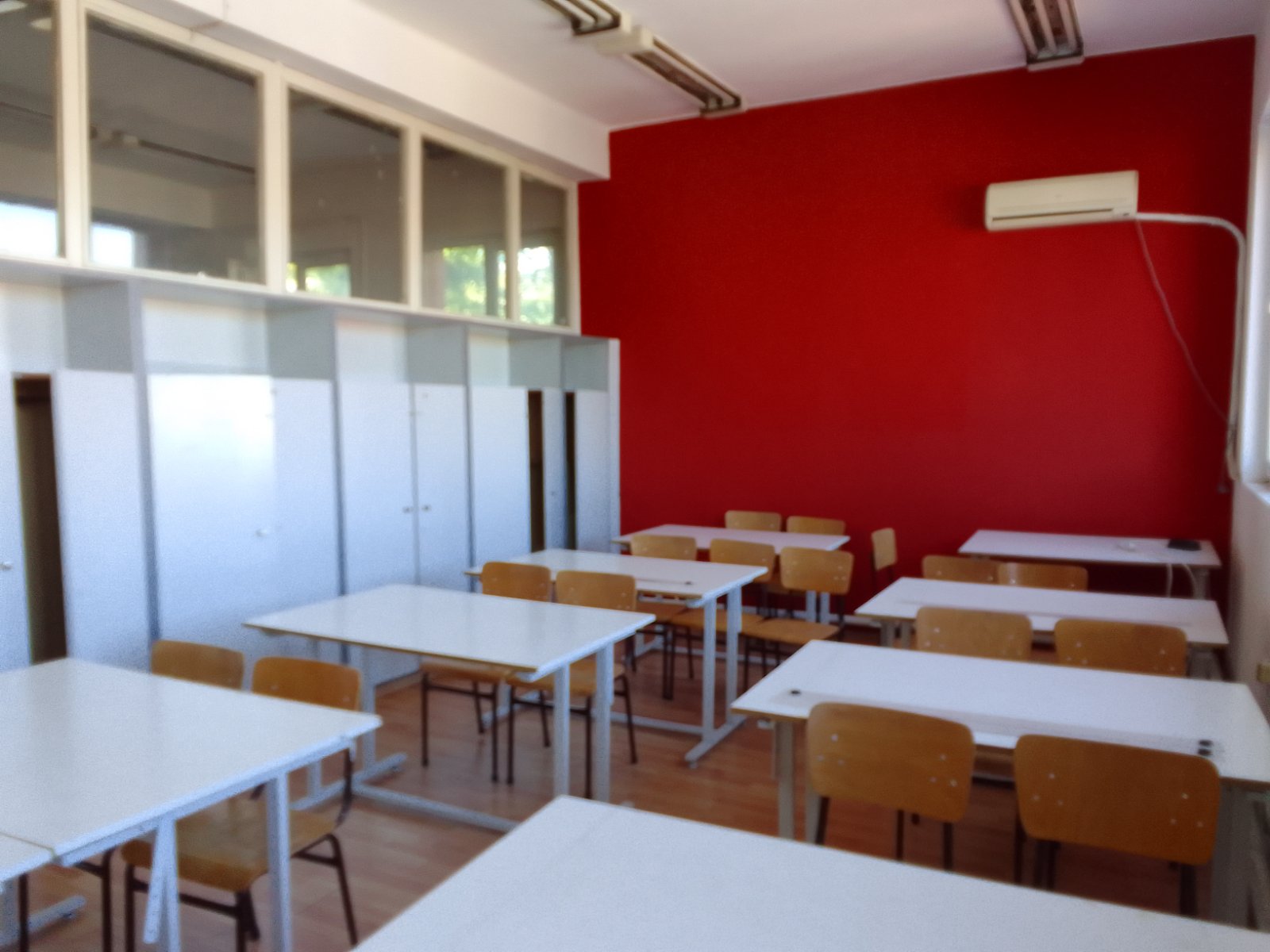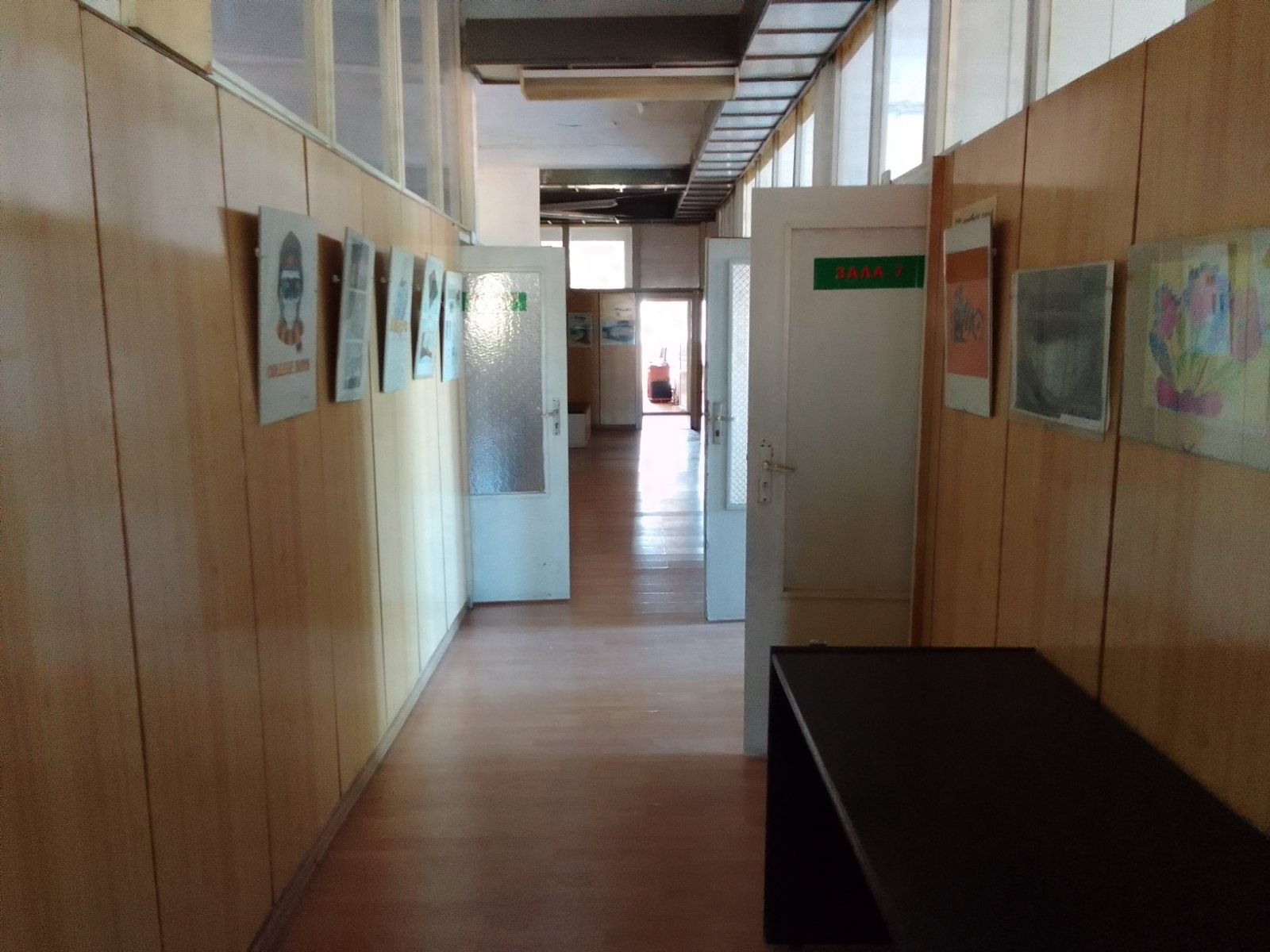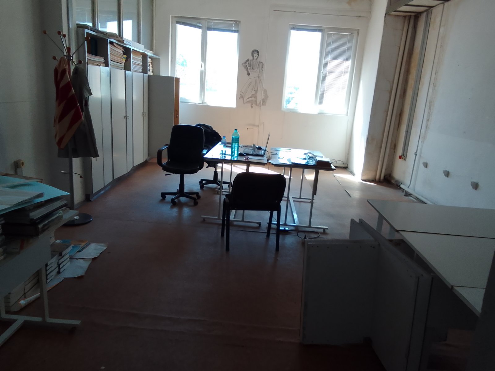 ниво. Състои се от девет основни помещения, две спомагателни, два сан. възела. Подходящо е за учебен център, офис, фитнес и др. Помещенията са преградени с временни прегради, които могат да се премахнат и да стане едно голямо пространство тип "Open Space office ". Ситуиран на четвърти етаж в пететажна сграда с обща площ от 550 кв. м.