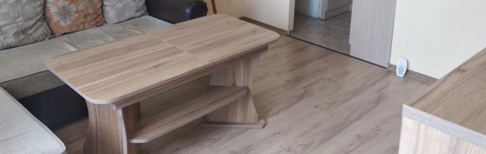 Жилището е с PVC дограма, подовите настилки са тертакот с коридора и бокса и ламинат в стаите.