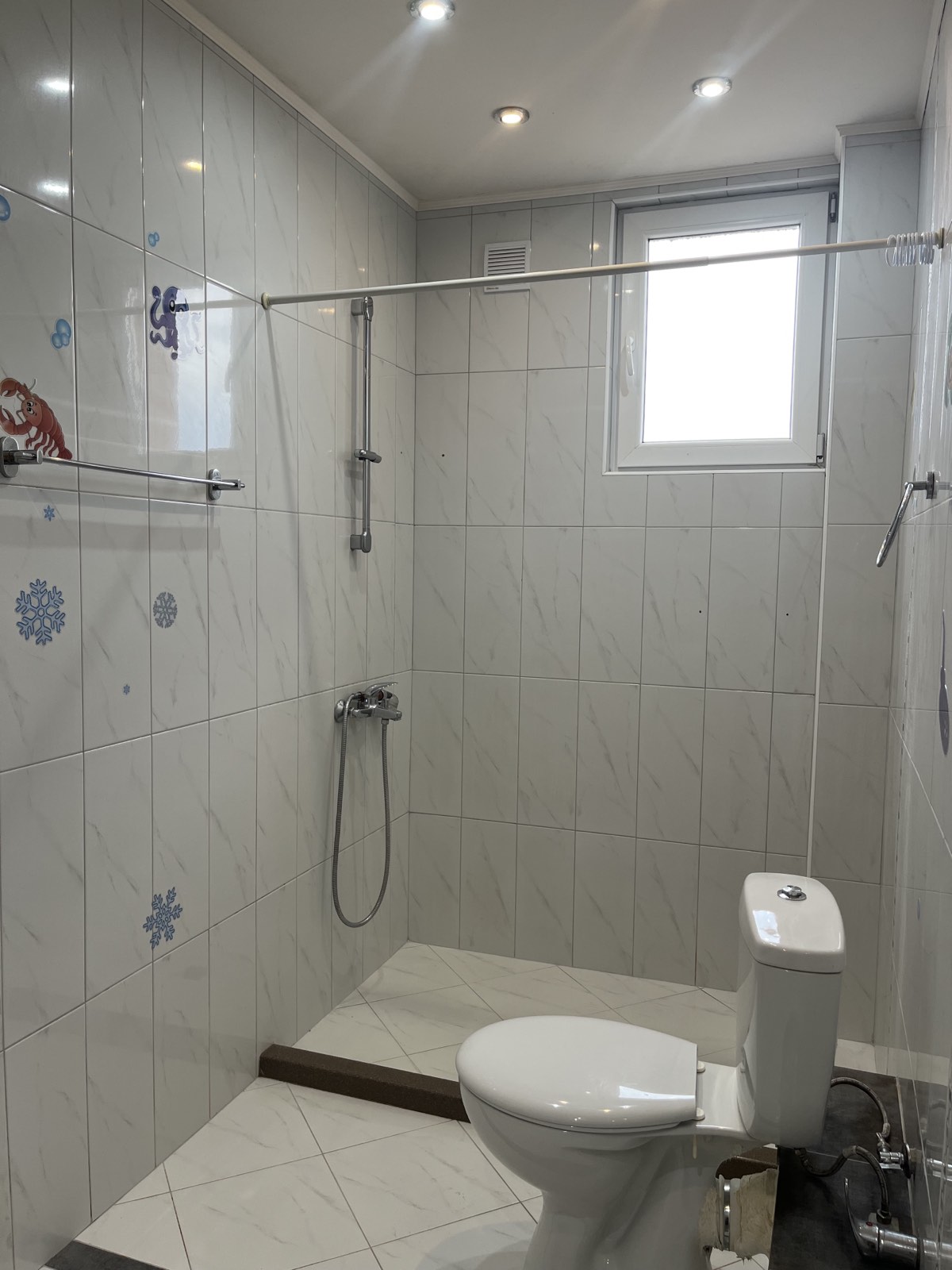 Две самостоятелни големи спални. Просторен хол с трапезария и кухненски бокс - 40 кв.м. Тераси на които се излиза от всички стаи. Баня с тоалетна и втора тоалетна.
