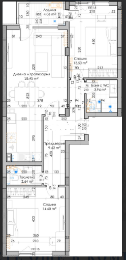 Апартамента е на степен на завършеност-шпакловка и замазка.