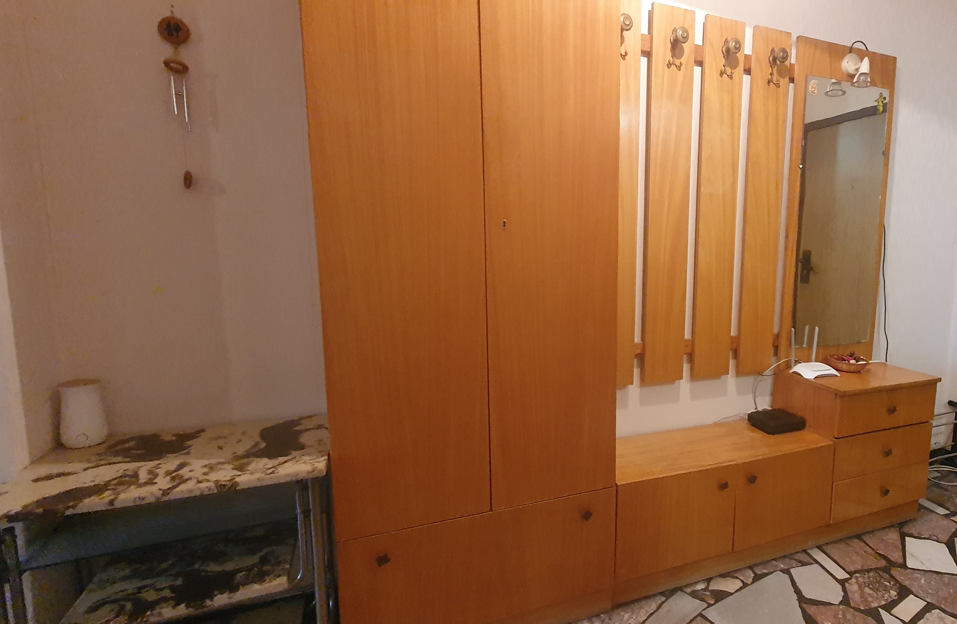 Трикрилен голям гардероб в коридор, заедно с Портманто за палта и шкаф за обувки.