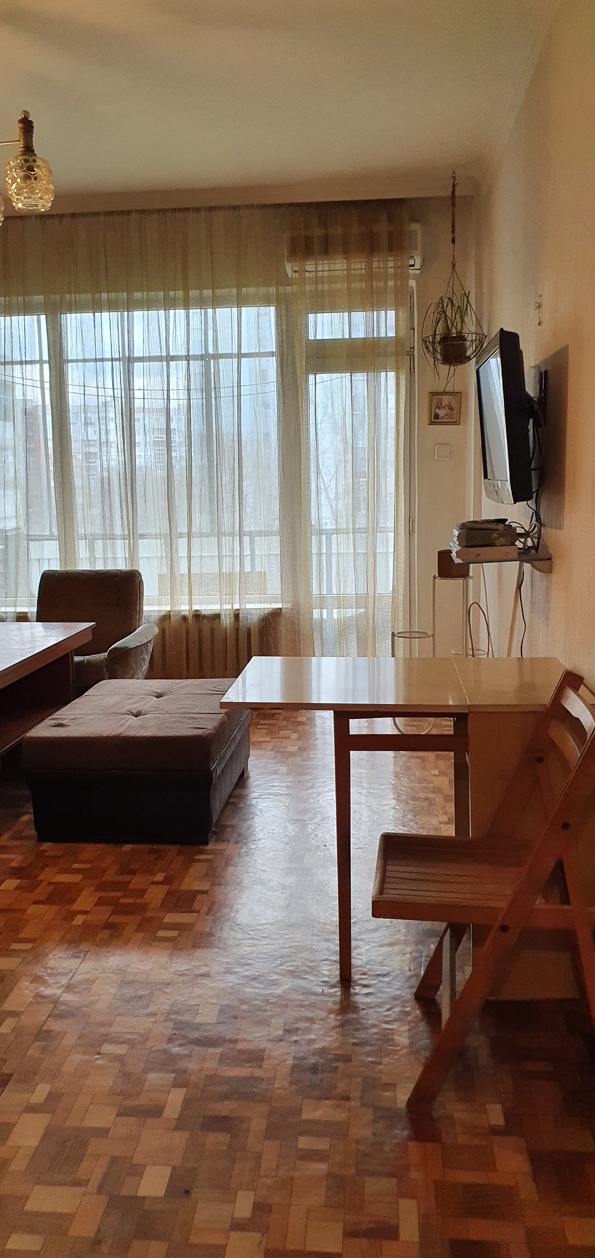 Спалня, хол с трапезария и кухня, санитарен възел и голяма затворена тераса на хол.