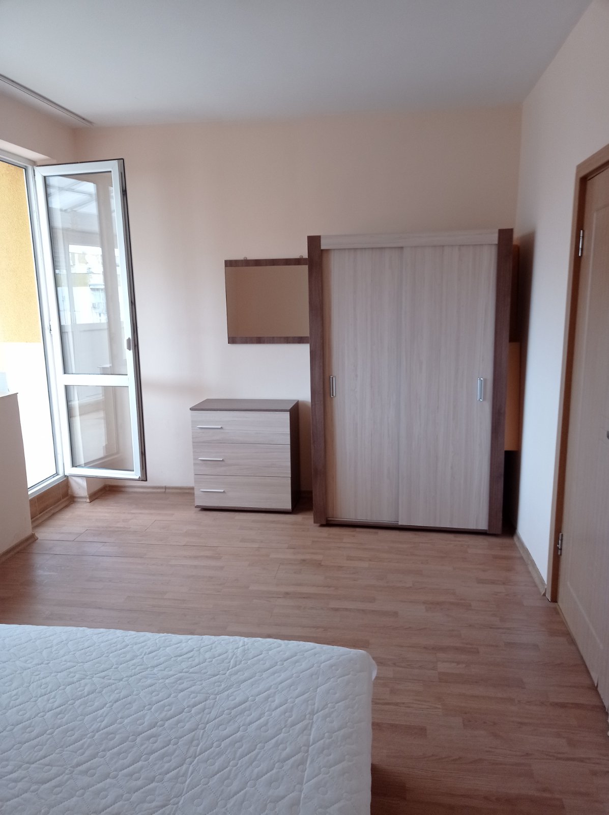 НОВА КООПЕРАЦИЯ. Напълно обзаведено жилище със спалня комплект с гардероб, скрин и оставащо място за други мебели!
