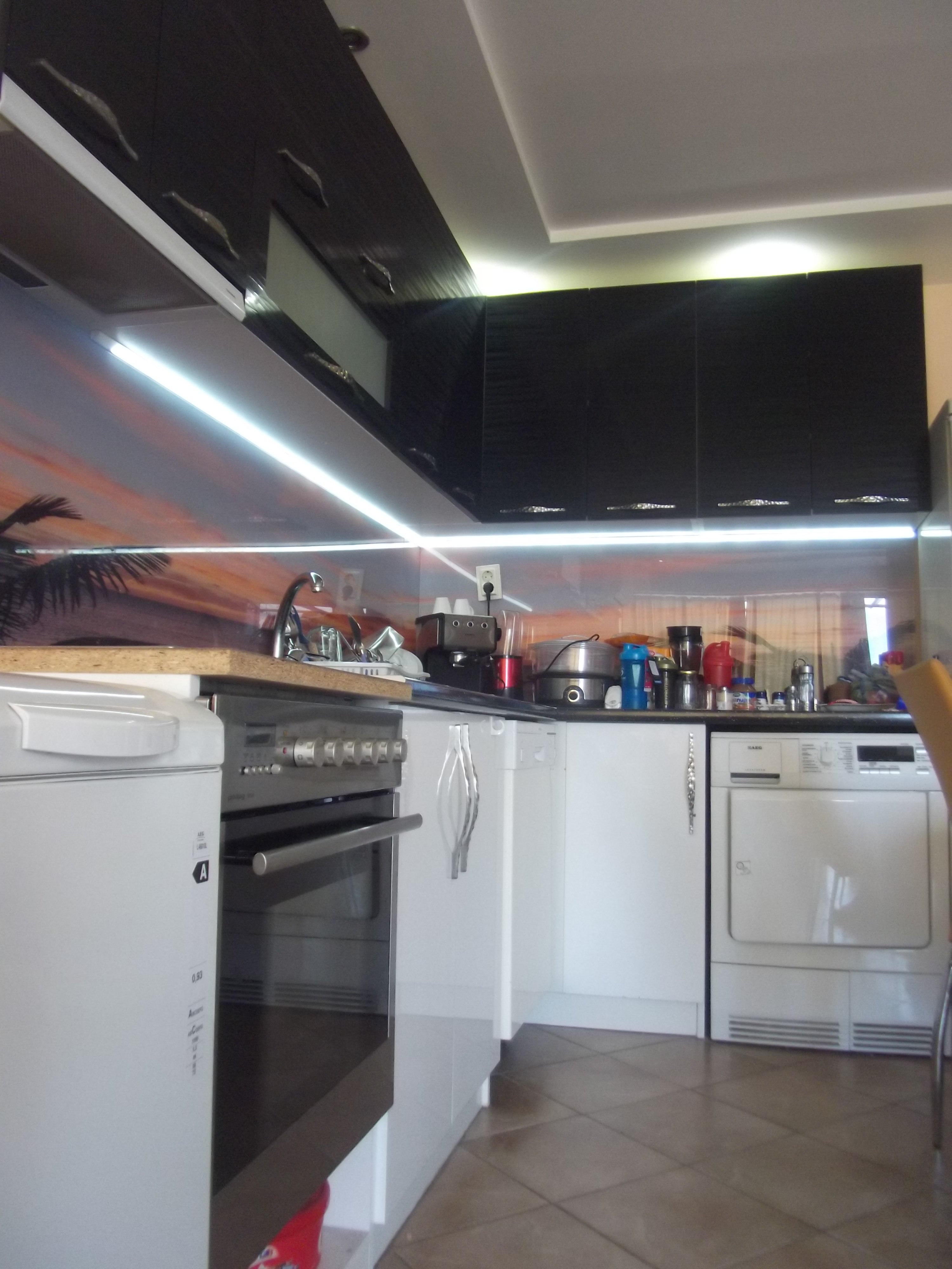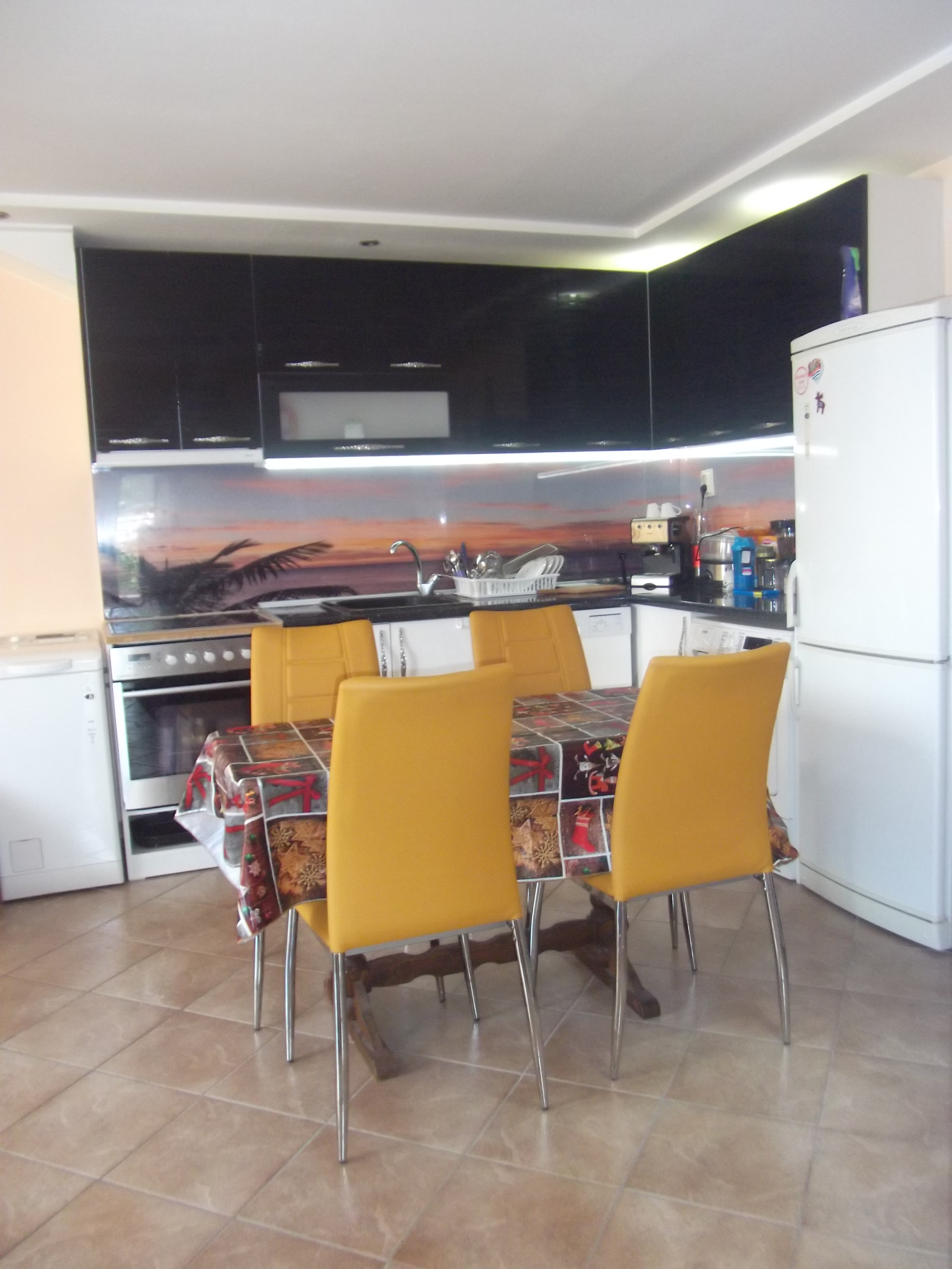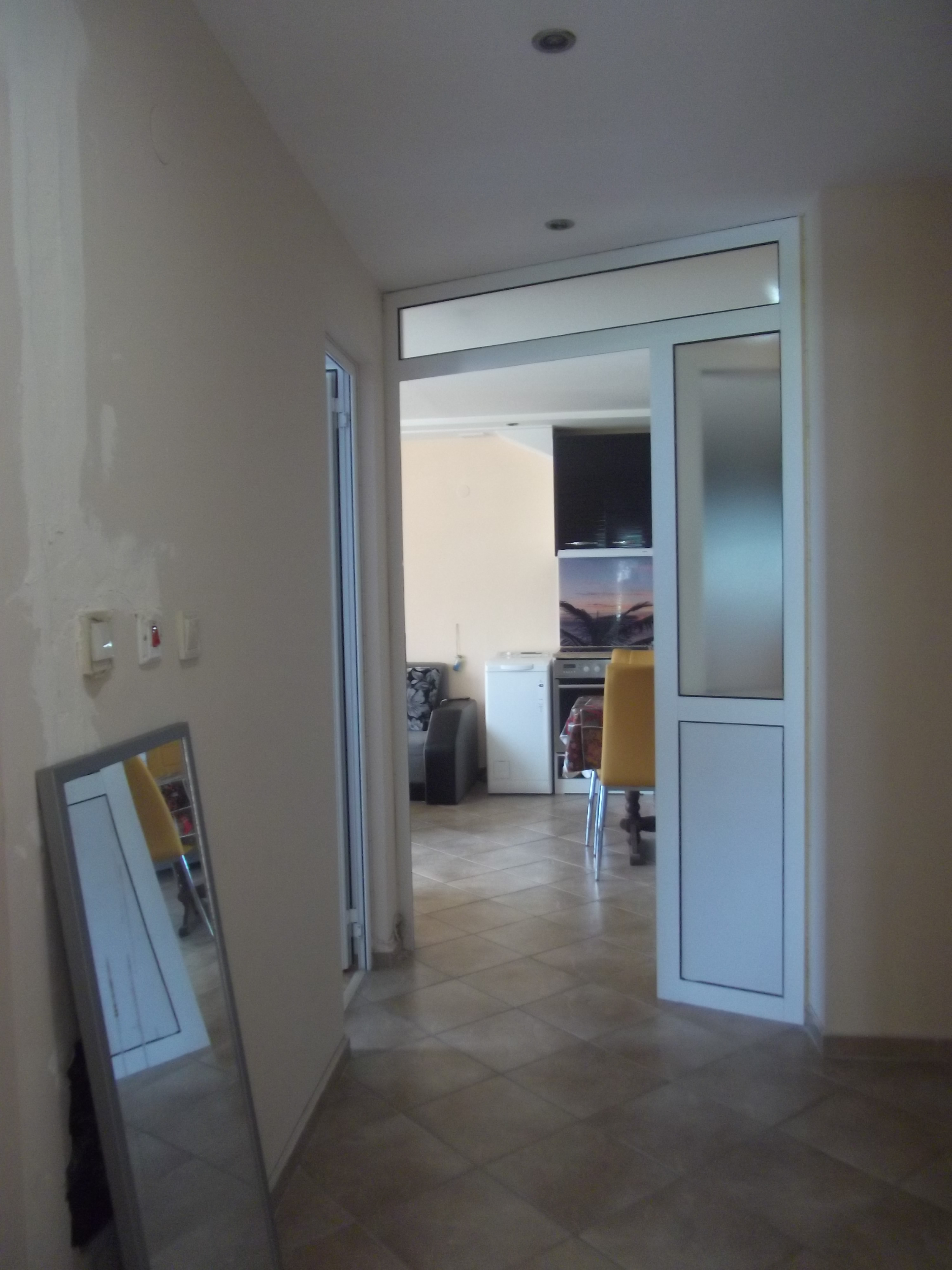 Завършен е на гранитогрес, дограма, блиндирана входна врата. ПОРЪЧКОВО КУХНЕНСКО ОБЗАВЕЖДАНЕ вградени ел.уреди: вградена фурна, керамични котлони, аспиратор. Окачени тавани с лунички. Оборудвана баня.