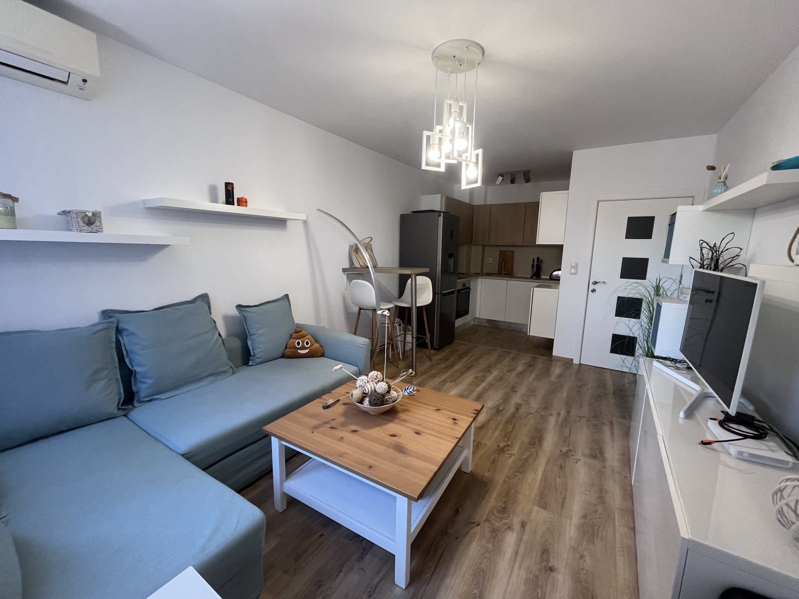 Спалня, хол с трапезария и кухненски бокс. Тераса на която се излиза от спалня и хол.